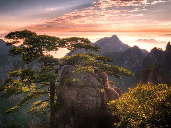 Mount Huangshan (Yellow Mountain or Mt. Huangshan) in east China's Anhui province is one of China's ten best-known scenic spots. It is characterized by the four wonders, namely, odd-shaped pines, grotesque rock formation, seas of clouds and crystal-clear hot springs. Yellow Mountain is celebrated for having all the features of mountain scenery.